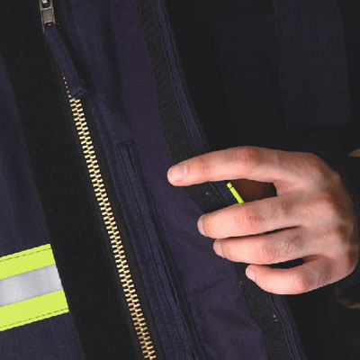 3.領口可翻上或翻下並有防火魔鬼氈可固定