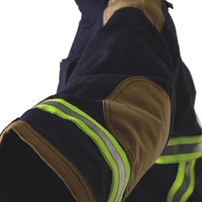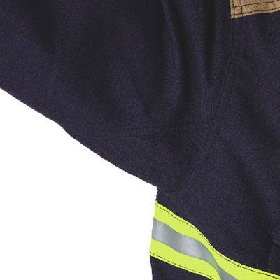 整件材質 由耐焰層、防水透濕層、隔熱內裡層及防毛細層組合,全套消防衣褲之同一層均採用相同材質縫製。由對OPF加位芳香族聚醯胺永久防火纖維(芳綸1414)組成及間位芳香族聚醯胺永久性防火纖維(芳綸1313)組成。